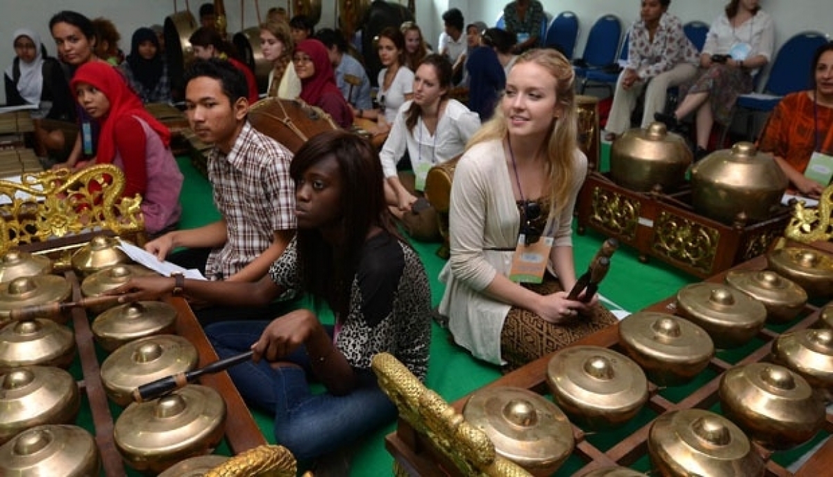 ຊາວຕ່າງປະເທດ ກັບການຝຶກຫຼີ້ນວົງດົນຕີ ຢາເມີລານ (ພາບ: Kompas) |