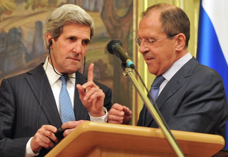![]() ລັດຖະມົນຕີການຕ່າງປະເທດອາເມລິກາ John Kerry ແລະ ລັດຖະມົນຕີການຕ່າງປະເທດລັດເຊຍ Sergei Lavrov.