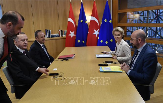 ເພື່ອແກ້ໄຂບັນຫາຊາວອົບພະຍົບຊາວຊີຣີ ແລະ ບັນດາປະເທດຕາເວັນອອກກາງ ໄປຜ່ານຊາຍແດນ ຕວັກກີ ນັ້ນ, ໄດ້ບັງຄັບໃຫ້ອີຢູ ຕ້ອງເຈລະຈາກັບຕວັກກີ ຄືນໃໝ່. ທີ່ການເຈລະຈາຄັ້ງທຳອິດ, ເຊິ່ງດຳເນີນເມື່ອວັນທີ 09 ມີນາ ນັ້ນ, 2 ຝ່າຍໄດ້ເຫັນດີສ້າງຕັ້ງກຸ່ມເຮັດວຽກປະຕິບັດຂໍ້ຕົກລົງກ່ຽວກັບບັນຫາຊາວອົບພະຍົບເຊິ່ງໄດ້ລົງນາມເມື່ອປີ 2016. ສິ່ງທີ່ໜ້າສົນໃຈໃນການເຈລະຈານັ້ນແມ່ນ, ຝ່າຍອີຢູ ໄດ້ເຫັນດີກ່ຽວກັບຫຼັກການສະໜອງບ້ວງເງິນໃຫ້ທັງຊາວອົບພະຍົບ, ເກຼັກ ແລະ ຕວກກີ. ການກະທຳດັ່ງກ່າວແມ່ນເພື່ອແນໃສ່ລະດົມກຳລັງໃຈເພື່ອໃຫ້ເຂົາເຈົ້າຊອກຫາບັນດາມາດຕະການຄວບຄຸມຊາວອົບພະຍົບຢ່າງມີປະສິດທິຜົນກວ່າ, ເພື່ອກ້າວໄປເຖິງບັນດາຂໍ້ຕົກລົງທີ່ເໝາະສົມກັບຜົນປະໂຫຍດຂອງທັງອີຢູ ແລະ ຕວັກກີ ກວ່າ.