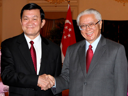 ![]() ທ່ານປະທານປະເທດຫວຽດນາມ Truong Tan Sang ແລະ ທ່ານປະທານາທິບໍດີ ສິງກະໂປ Toni Tan Keng Yam