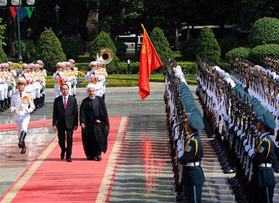 (vovworld) - ທ່ານປະທານາທິບໍດີປະເທດສ.ອິດສະລາມ Hassan Rouhani ພວມມີການຢ້ຽມຢາມທາງລັດຖະກິດຫວຽດນາມ ຕາມຄຳເຊີນຂອງທ່ານປະທານປະເທດຫວຽດນາມ ເຈີນດ້າຍກວາງ. ການຢ້ຽມຢາມຖືກດຳເນີນແຕ່ວັນທີ 5 – 6/10 ແມ່ນເພື່ອແນໃສ່ຊຸກຍູ້ການຮ່ວມມືລະຫວ່າງ 2 ຄູ່ຮ່ວມມືທີ່ເປັນມູນເຊື້ອ, ປະກອບສ່ວນເພີ່ມທະວີການພົວພັນຮ່ວມມືລະຫວ່າງຫວຽດນາມ ກັບ ອີຣານ ໃນສະພາບການໃໝ່, ນຳການພົວພັນມິດຕະພາບທີ່ເປັນມູນເຊື້ອ ແລະ ການຮ່ວມມືຫຼາຍດ້ານລະຫວ່າງ 2 ປະເທດໃຫ້ກ້າວເຂົ້າສູ່ໜ້າປະຫວັດສາດໃໝ່.