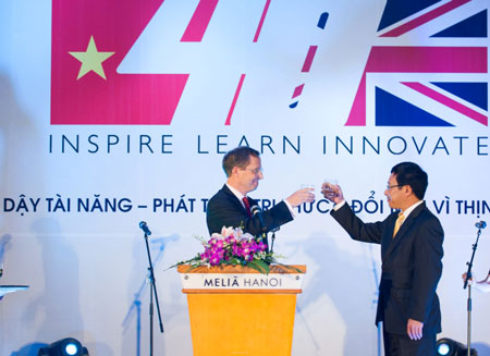 ທ່ານລັດຖະມົນຕີການຕ່າງປະເທດຫວຽດນາມ ຟ້າມບິ່ນມິນ ແລະ ທ່ານເອກອັກຄະລັດຖະທູດອັງກິດ ປະຈຳຫວຽດນາມ Antony Stokes ອວຍພອນຜົນສຳເລັດຂອງສາຍພົວພັນຫວຽດນາມ - ອັງກິດ