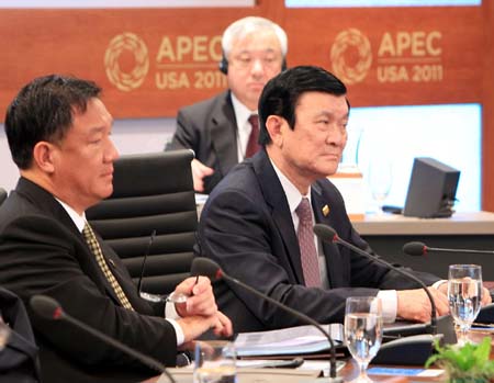 ![]() ທ່ານປະທານປະເທດຫວຽດນາມ Truong Tan Sang ເຂົ້າຮ່ວມກອງປະຊຸມສຸດຍອດ APEC 2011 ທີ່ຈັດຂຶ້ນຢູ່ອາເມລິກາ (ພາບ : internet )