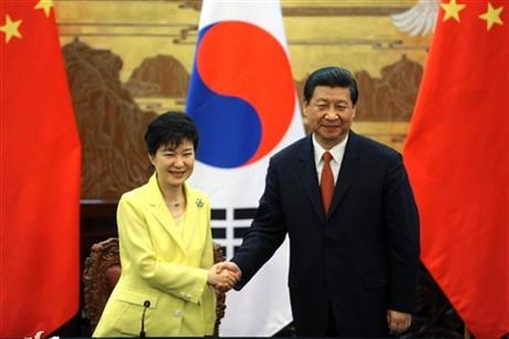 ![]() ທ່ານປະທານປະເທດຈີນ ສີຈີນຜີງ ແລະ ທ່ານນາງປະທານາທິບໍດີ ສ.ເກົາຫຼີ Park Geun-Hye |