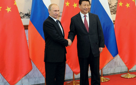 ການພົວພັນແບບຄູ່ແຂ່ງ-ຄູ່ຮ່ວມມື, ການພົວພັນຮ່ວມມື - ຈຳກັດຊຶ່ງກັນ ແລະ ກັນລະຫວ່າງ ຈີນ ແລະ ອາເມລິກາໄດ້ເຮັດໃຫ້ລັດເຊຍຫຍັບມໍ່ເຂົ້າກັບຈີນຄືເປັນສິ່ງຊ່ວຍແກ້ໄຂທ່າຕົກຢູ່ໂດດດຽວໃນປະຈຸບັນ. ໃນສະພາວະທີ່ພວມຖືກບັນດາຄຳສັ່ງລົງໂທດຈາກຝ່າຍຕາເວັນຕົກນັ້ນ, ລັດເຊຍຄວນຊອກຫາທາງອອກໃຫ້ແກ່ພື້ນຖານເສດຖະກິດດ້ວຍບັນດາແຫຼ່ງເງິນລົງທຶນຈາກຕ່າງປະເທດ ແລະ ຈີນກໍແມ່ນປະເທດທີ່ສົມຫວັງ.