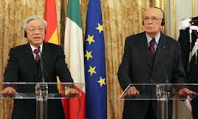 ![]() ທ່ານ ເລຂາທິການໃຫຍ່ ຫງວຽນຟູຈ້ອງ ແລະ ທ່ານ ປະທານາທິບໍດີ ອີຕາລີ Giorgio Napolitano