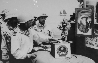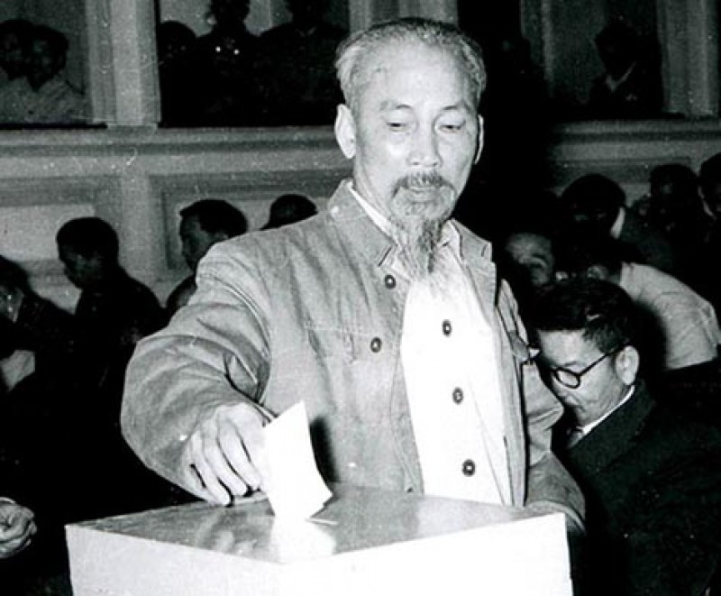 ![]() ທ່ານປະທານ ໂຮ່ຈີມິນ ປ່ອນບັດເລືອກຕັ້ງໃນວັນທີ 6/1/1946