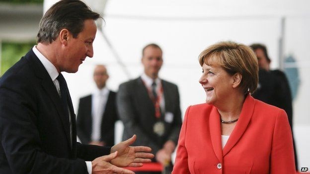 ![]() ທ່ານນາຍົກລັດຖະມົນຕີອັງກິດ Cameron ແລະ ຄູ່ຕຳແໜ່ງຂອງເຢຍລະມັນ |