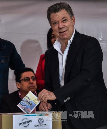 ![]() ທ່ານປະທານາທິບໍດີ Colombia Juan Manuel Santos ປ່ອນບັດຢູ່ Bogota, Colombia ໃນວັນທີ 2/10.