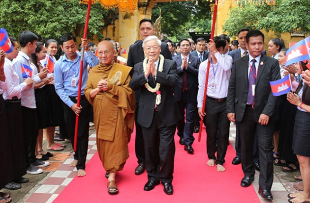 ທ່ານເລຂາທິການໃຫຍ່ ຫງວຽນຟູຈ້ອງ ຢ້ຽມຢາມ ວັດ Svay Pope ຢູ່ Phnom Penh |