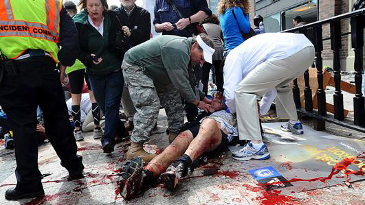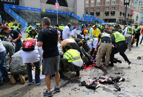 ລູກລະເບີດ 2 ລູກໄດ້ລະເບີດຂຶ້ນຢູ່ມໍ່ກັບເປົ້າໝາຍຂອງການແຂ່ງຂັນແລ່ນ Marthon Boston ໄດ້ເຮັດໃຫ້ການແຂ່ງຂັນກິລາທີ່ຟົດຟື້ນນີ້ກາຍເປັນເຫດການຖືກທຳລາຍຢ່າງນອງເລືອດ. ໄລ່ມາຮອດຈຸດເວລາປະຈຸບັນ, ເຫດການດັ່ງກ່າວໄດ້ເຮັດໃຫ້ຢ່າງໜ້ອຍສຸດ 3 ຄົນເສຍຊີວິດ ແລະ ປະມານ 180 ຄົນຖືກບາດເຈັບ. ຈຳນວນຜູ້ຖືກບາດເຈັບລົ້ມຕາຍອາດຈະເພີ່ມຂຶ້ນອີກຍ້ອນມີຫຼາຍຄົນຖືກບາດເຈັບສາຫັດ. ພາຍຫຼັງການບຸກໂຈມຕີ, ທ່ານປະທານາທິບໍດີອາເມລິກາ Barack Obama ໄດ້ຊີ້ນຳລັດຖະບານສະຫະລັດຕ້ອງເພີ່ມທະວີການປ້ອງກັນຄວາມສະຫງົບໃນທົ່ວປະເທດອາເມລິກາ ແລະ ໃຫ້ຄຳໝັ້ນສັນຍາທາງໂທລະພາບວ່າ ຈະນຳຜູ້ຢືນຢູ່ເບື້ອງຫຼັງເຫດວາງລະເບີດດັ່ງກ່າວທັງໝົດຂຶ້ນສານ.
