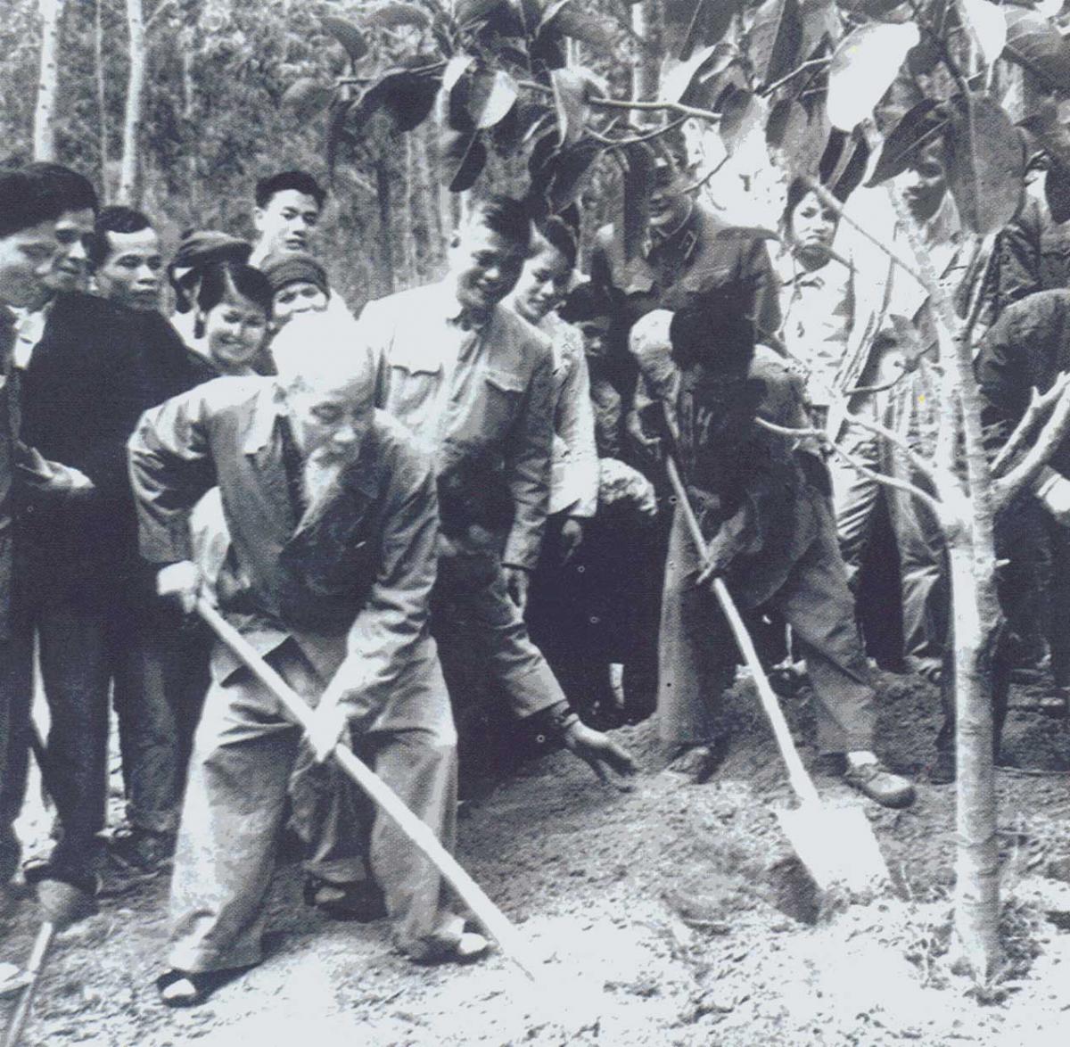 ![]() ປະທານໂຮ່ຈິມີນ ເຂົ້າຮ່ວມການປູກຕົ້ນໄມ້ກັບປະຊາຊົນ