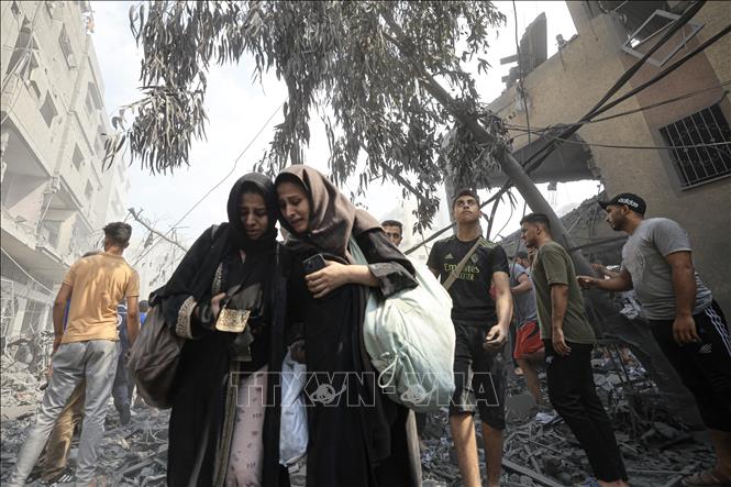 ຊາວປາແລັດສະຕິນ ເດີນທາງອອກຈາກເຂດ ກາຊາ (ພາບ: TTXVN)