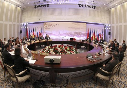 ກົງກັນຂ້າມກັບການຄາດຄະເນໃນເບື້ອງຕົ້ນຂອງວົງການນັກສັງເກດການ, ພານຫຼັງການເຈລະຈາ ເປັນເວລາ 2 ວັນຄືວັນທີ 25-26/2, ຢູ່ສ.ກາຊັກສະຖານ, ອີຣານ ແລະ ກຸ່ມ P5 + 1 (ລວມມີ 5 ປະເທດກຳມະການປະຈຳສະພາ ຄວາມໝັ້ນຄົງ ສ.ປ.ຊ ແລະ ເຢັຍລະມັນ) ໄດ້ບັນລຸບັນດາບາດກ້າວທີ່ຕັ້ງໜ້າກ່ຽວກັບໂຄງການນິວເຄຼຍຂອງອີຣານ. ໝາກຜົນດັ່ງກ່າວ, ເປັນການຕັ້ງຄວາມຫວັງໃຫ້ຝ່າຍຕ່າງໆແກ້ໄຂໄດ້ສະພາບບໍ່ມີທາງອອກກ່ຽວກັບບັນຫານິເຄຼຍຂອງອີຣານ. ພາຍຫຼັງສິ້ນສຸດການເຈລະຈາ, ຜູ້ຕາງໜ້າຂອງ ອີຣານ ແລະ ກຸ່ມ P5 + 1 ລ້ວນແຕ່ຢືນຢັນວ່າ ບັນດາການປຶກສາຫາລືໄດ້ດຳເນີນໄປຢ່າງຕັ້ງໜ້າ. ສິ່ງ ດັ່ງກ່າວໄດ້ສວະແດງໃຫ້ເຫັນຜ່ານເລື່ອງທັງ 2 ຝ່າຍໄດ້ເປັນເອກະສັນກັນຈັດຕັ້ງ ການເຈລະຈາຂັ້ນນັກວິຊາການໃນ 2 ວັນຄື 17 ແລະ 18/3 ຢູ່ຕວກກີ ແລະ ການເຈລະຈາຕໍ່ໄປລະຫວ່າງ ກຸ່ມ P5 + 1 ແລະ ອີຣານໃນວັນທີ 5 ແລະ ທີ່ 6/4 ຢູ່ ສ.ກາຊັກສະຖານ. ນອກຈາກນັ້ນ, ກຸ່ມ P5 + 1 ຍັງຜ່ອນສັ້ນຜ່ອນຍາວ ຂະນະທີ່ໄດ້ຍົກອອກຂໍ້ສະເໜີໂຍະຍານຄຳສັ່ງຂວ້າບາດກ່ຽວກັບຄຳ ແລະ ໂລຫະປະເສີດ ແທນທີ່ບັນດາຂໍ້ສະເໜີກ່ອນນີ້ ແມ່ນພຽງຍົກເລີກຄຳສັ່ງຂວ້າບາດ ທີ່ມີຕໍ່ເຄື່ອງອາໄລເຮືອບິນພົນລະເຮືອນເພື່ອແລກເອົາເລື່ອງອີຣານຢຸດການເຄືອ່ນໄຫວສ່ວນໜຶ່ງໃນໂຄງການນິວເຄຼຍຂອງຕົນ. ລະອຽດວ່າ 5 ປະເທດປະຈຳສະພາ ຄວາມໝັ້ນຄົງ ສ.ປ.ຊ ແລະ ເຢັຍລະມັນຈະໂຍະຍານບັນດາຄຳສັ່ງຂວ້າບາດທີ່ແນໃສ່ບັນດາແລກປ່ຽນຄ້າຂາຍຄຳ ແລະ ໂລຫະປະເສີດຂອງອີຣານ, ພ້ອມທັງຍົກເລີກການຈຳກັດຊຶ່ງເຄີຍໄດ້ຈັດວາງຕໍ່ການພົວພັນແລກປ່ຽນທາງທະນາຄານຂອງປະເທດສ.ອິດສະລາມນີ້. ແຕ່ສຳລັບອີຣານນັ້ນ, ແມ່ນຕ້ອງຢຸດຕິການເສີມທາດຢູເຣນຽມລະດັບ 20% ແລະ ຕ້ອງປິດປະຕູໂຮງງານ Fordow ຊຶ່ງແມ່ນແຫ່ງທີ່ຝ່າຍຕາເວັນຕົກສົງໄສວ່າ ພວມຜະລິດຢູເຣນຽມ, ພ້ອມກັນນັ້ນ, ຕ້ອງຍົກຍ້າຍສາງຢູເຣນຽມທັງໝົດ ຖ້າຫາກວ່າມັນບໍ່ຕ້ອງການນຳໃຊ້ແກ່ເປົ້າໝາຍການແພດ.