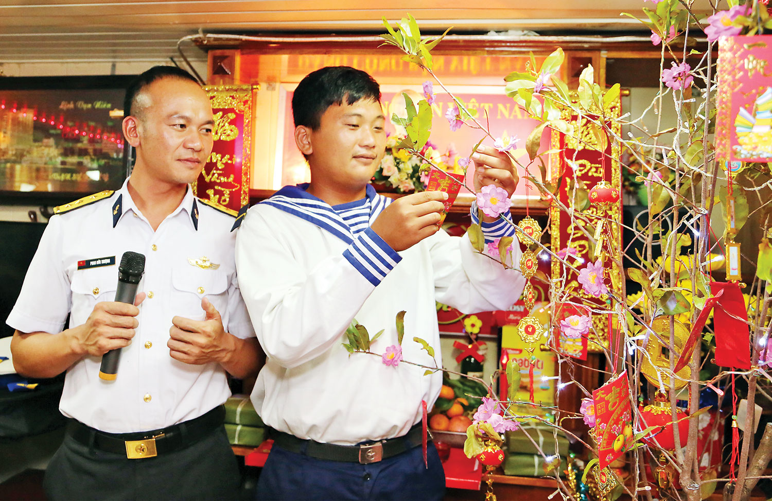 ເຂົ້າຮ່ວມວຽກງານກູ້ໄພກູ້ຊີບ, ເຖິງວ່າຕ້ອງປະເຊີນໜ້າກັບໄພອັນຕະລາຍຫຼາຍຢ່າງກໍ່ຕາມ, ແຕ່ຍ້ອນຄວາມປອດໄພຂອງຊາວປະມົງ, ສະນັ້ນບັນດາພະນັກງານ, ນັກຮົບຍາມໃດກໍ່ຕັດສິນໃຈພະຍາຍາມຈົນສຸດຄວາມສາມາດຂອງຕົນ. ຍ້ອນລັກສະນະຈຸດພິເສດຂອງໜ້າທີ່ວຽກງານ, ບັນດາພະນັກງານ, ນັກຮົບຈຶ່ງໄດ້ ປະຈຳການ 24 ຊົ່ວໂມງ, ນັບທັງວັນບຸນ, ບຸນເຕັດ. ທ່ານພັນໂທ ຫງວຽນວັນຄຽມ, ພາລະກອນການເດີນທະເລ, ຜູ້ບັນຊາການກ່ຳປັ່ນ 954 ແລະ ກໍ່ແມ່ນຜູ້ທີ່ຕ້ອນຮັບບຸນເຕັດຢູ່ກ່ຳປັ່ນມາເປັນເວລາ 20 ປີໃຫ້ຮູ້ວ່າ, ເມື່ອເລືອກເອົາວຽກງານນີ້ແມ່ນຕ້ອງເສຍສະຫຼະທຸກສິ່ງທຸກຢ່າງເພື່ອແລກເອົາຄວາມສະຫງົບສຸກມາໃຫ້ປະເທດຊາດ. ຍ້ອນໜ້າທີ່, ຈຶ່ງໄດ້ຕ້ອນຮັບບຸນເຕັດກ່ອນຈຸດເວລາ, ນັ້ນກໍ່ແມ່ນຄວາມເປັນກຽດຂອງນັກຮົບແຕ່ລະຄົນ.