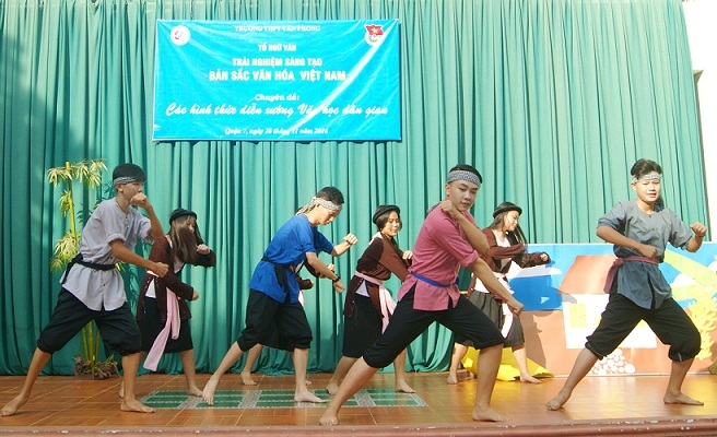 ແຕ່ປີ 2002, ບັນດາຄູອາຈານພາກວິຊາວັນນະຄະດີ ໃນໂຮງຮຽນມັດທະຍົມຕອນປາຍ ລົງເລິກວິຊາພາສາຕ່າງປະເທດສັງກັດມະຫສວິທະຍາໄລພາສາຕ່າງປະເທດ-ມະຫາວິທະຍາໄລ ຮ່າໂນ້ຍ ໄດ້ຜັນຂະຫຍາຍວິທີການສອນວັນນະຄະດີມຸ່ງໄປສູ່ຜູ່ຮຽນ, ຖືເອົາຜູ້ຮຽນເປັນໃຈກາງ, ຊ່ວຍໃຫ້ຜູ້ຮຽນໄດ້ຜ່ານຕົວຈິງກ່ຽວກັບຕົວລະຄອນໃນບົດປະພັນວັນນະຄະດີ ດ້ວຍການສວມບົດຂອງຕົນ. ໃນບັນດາຊົ່ວໂມງຮຽນ, ພວກນ້ອງໄດ້ອ່ານບົດປະພັນວັນນະຄະດີ, ຊອກຄວາມເຂົ້າໃຈແລ້ວກໍ່ຂຽນເປັນບົດນິພົນ ແລະ ສະແດງເປັນບົດລະຄອນ, ຫຼັງຈາກນັ້ນກໍ່ຈັດຕັ້ງກອງປະຊຸມສຳມະນາ, ຫຼື ຈັດຕັ້ງເປັນບັນດາເຫດການ, ການລະຫຼິ້ນວັດທະນະນຳວິທະຍາດ ທີ່ມີລັກສະນະສິລະປະກຳ. ນີ້ແມ່ນວິທີຊ່ວຍໃຫ້ນັກຮຽນສຳພັດກັບວິຊາຮຽນຢ່າງເປັນເຈົ້າການ, ທັງເປັນການຝຶກຝົນຫຼໍ່ຫຼອມທາງດ້ານທັກສະ ເຮັດວຽກເປັນກຸ່ມ, ທັກສະສ້າງຫົວເລື່ອງ, ເສີມຂະຫຍາຍຄວາມສາມາດຮຽນດ້ວຍຕົນເອງ. ວິທີຮຽນນີ້ຍາມໃດກໍ່ໄດ້ຮັບຄວາມເຫັນດີ ເຂົ້າຮ່ວມຈາກພວກນ້ອງນັກຮຽນ ລົງເລິກວິຊາພາສາຕ່າງປະເທດຢ່າງສຸດໃຈ.