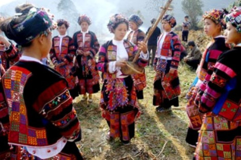 ບ່າວສາວຊົນເຜົ່າພ້ອມກັນຮ້ອງລຳທຳເພງ |