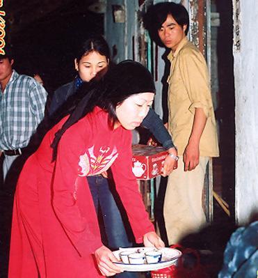 “ຕາມປະເພນີຂອງຊາວເຜົ່ານຸ່ງຢູ່ທີ່ນີ້, ໃນພິທີຕ້ອນຮັບເຈົ້າສາວຕ້ອງມີໂຕໝູປິ່ນຢ່າງເດັດຂາດ. ສ່ວນໃນພິທີສົ່ງຫຼານໃພ້ມາຄອບຄົວເຈົ້າບ່າວຢ່າງເປັນທາງການແມ່ນຕ້ອງມີເຂົ້າໜຽວ ແລະ ໄກ່ຕົ້ມ. ຕາມປະເພນີ, ໝໍສົ່ງ ແລະ ໝໍຮັບຕ້ອງພົບປະກັນແຕ່ຕອນຄຳ່ຂອງມື້ກ່ອນນັ້ນເພື່ອກະກຽມໃຫ້ພິທີສົ່ງຮັບເຈົ້າສາວ“.