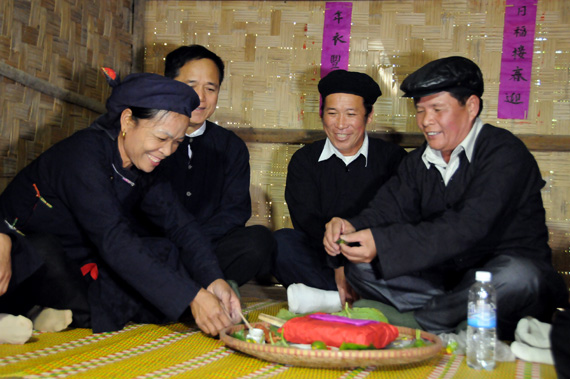 ຄອບຄົວເຈົ້າສາວເຊີນຄອບຄົວເຈົ້າບ່າວຄ້ຽວໝາກ