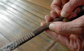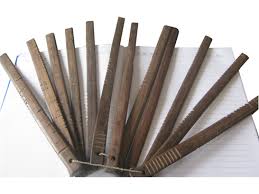 ໃນໄມ້ໄຜ່ແຕ່ລະປ່ຽງຖືກຄວັດເປັນຫຼາຍຂີດທີ່ແຕກຕ່າງກັນ