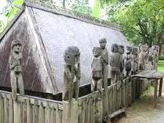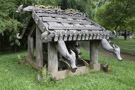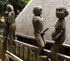 ຮູບແກະສະຫຼັກຕັ້ງຢູ່ຫໍຜີຂອງຊາວເຜົ່າບານາ