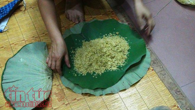 ເມື່ອແຂກມາຊື້, ເຂົ້າເໝົ້າກໍ່ຖືກຫໍ່ດ້ວຍໃບບົວ ແລ້ວກໍ່ມັດດ້ວຍເຟືອງທີ່ຍັງຂຽວ |