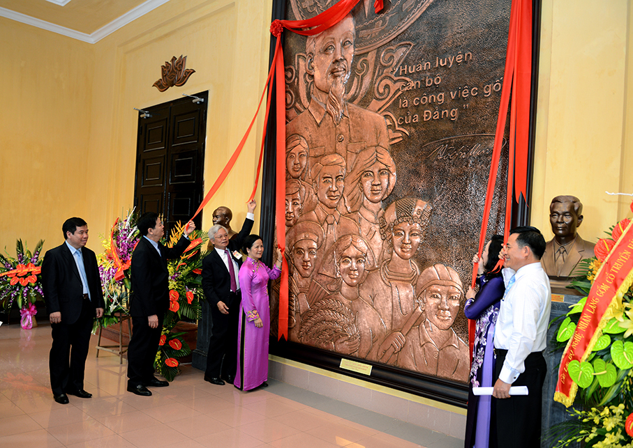 ຮູບແກະຄວັດສະຫຼັກ ກ່ຽວກັບພັກ, ປະທານ ໂຮ່ຈີມິນ ກັບພາລະກິດການບຳລຸງກໍ່ສ້າງພະນັກງານ |