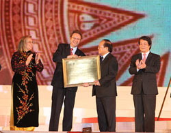 ![]() ການນຳກະຊວງວັດທະນະທຳ-ກິລາ ແລະ ທ່ອງທ່ຽວ ຕາງໜ້າຝ່າຍຫວຽດນາມຮັບໃບຢັ້ງຢືນມໍລະດົກວັດທະນະທຳ