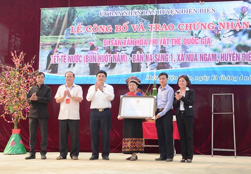 ໃນຊຸມວັນນີ້ ວົງຄະນະຍາດເຜົ່າລາວຢູ່ບ້ານນາຮາງ 1, ຕາແສງນົວງາມ ເມືອງດ້ຽນບຽນ ມີຄວາມເບີກບານມ່ວນຊື່ທີ່ສຸດ ເມື່ອກະຊວງວັດທະນະທໍາ, ກິລາ ແລະ ທ່ອງທ່ຽວຫວຽດນາມ ໄດ້ມອບໃບຢັ້ງຢືນຮັບຮອງບຸນຫົດນໍ້າແມ່ນມໍລະດົກວັດທະນະທໍາບໍ່ເປັນວັດຖຸລະດັບຊາດ. ເປັນອັນວ່າ ບັນດາຄວາມານະພະຍາຍາມຂອງພໍ່ແມ່ພີ່ນ້ອງ ໃນການອານຸລັກຮັກສາວັດທະນະທໍາພິເສດສະເພາະຂອງເຜົ່າຕົນຕໍ່ໜ້າການເຊື່ອມໂຍງຂອງວັດທະນະທໍາທັນສະໄໝໄດ້ຮັບການຕອບແທນ. ນາງເຫຼືອງຊາວໄມ ເຈົ້າພາບຂັ້ນຕອນຈັດພິທີກຳໃນບຸນຫົດນໍ້າ ບ້ານນາຮາງ 1 ໃຫ້ຮູ້ວ່າ: