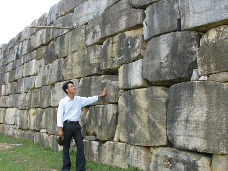 ![]() ລະບົບກຳແພງຖືກປຸກສ້າງດ້ວຍບັນດາໂງ່ນຫີນໃຫຍ່ ທີ່ມີນ້ຳໜັກ 20-30 ໂຕນຖືກຕັດເປັນສະເໝີ ແລະ ຖືກຕິດຕັ້ງກອງກັນດ້ວຍເຄື່ອງມືຢ່າງລະອຽດອ່ອນ