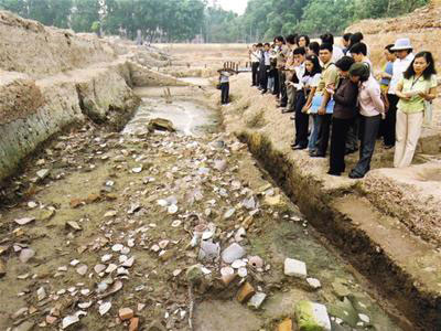 ![]() ແຂກມາຢ້ຽມຊົມຮ່ອງຮອຍບູຮານຄະດີ ຊຶ່ງຫາກໍຖືກຂຸດໃຕ້ດິນ