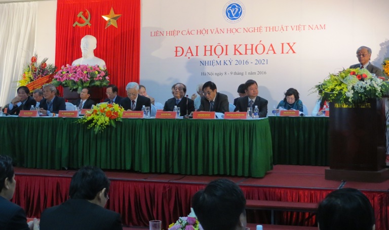 (vovworld)- ກອງປະຊຸມໃຫຍ່ຜູ້ແທນທົ່ວປະເທດສະຫະພັນບັນດາສະມາຄົມວັນນະຄະດີສິລະປະຫວຽດນາມ ຄັ້ງທີ 9 ອາຍຸການ 2016- 2021 ດຳເນີນໄປໃນວັນທີ 9/1 ຢູ່ຮ່າໂນ້ຍ ແມ່ນເຫດການເພື່ອທົບທວນຄືນບັນດາການປະກອບສ່ວນອັນໃຫຍ່ຫລວງຂອງນັກປະພັນ, ນັກສິລະປິນ ກວ່າ 40.000 ຄົນທີ່ຂຶ້ນກັບບັນດາຂະແຫນງການ ທີ່ມີຕໍ່ການພັດທະນາຂອງພື້ນຖານວັດທະນະທຳຫວຽດນາມ. ກອງປະຊຸມໃຫຍ່ ກໍແມ່ນໂອກາດເພືື່ອໃຫ້ບັນດານັກປະພັນນັກສິລະປິນສັງເກດຕີລາຄືນບັນດາຫນ້າທີ່ໃຫມ່ຂອງຕົນໃນໄລຍະພັດທະນາໃຫມ່ຂອງປະເທດຊາດ.