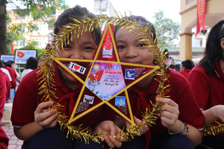 1,000 messages were written on star-shaped lanterns. The pupils also made paper masks as gifts for the soldiers' children.