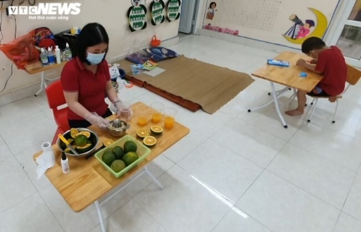 Ta Huong Ly, the principal of Le Loi kindergarten, says she voluntarily stays in isolation to take care of the children. She hopes that each of the kids can feel comfortable at school like they do at home. |