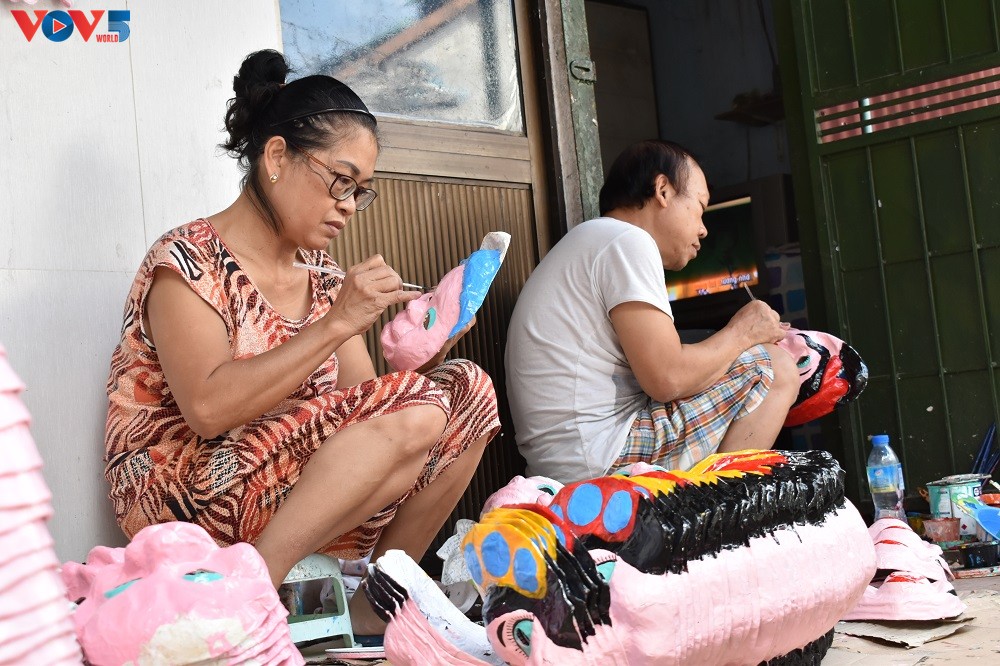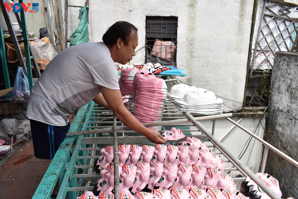 Today cardboard is considered a very environment-friendly material. In the past 45 years, Mr. Hoa and his wife have made thousands of beautiful masks. |