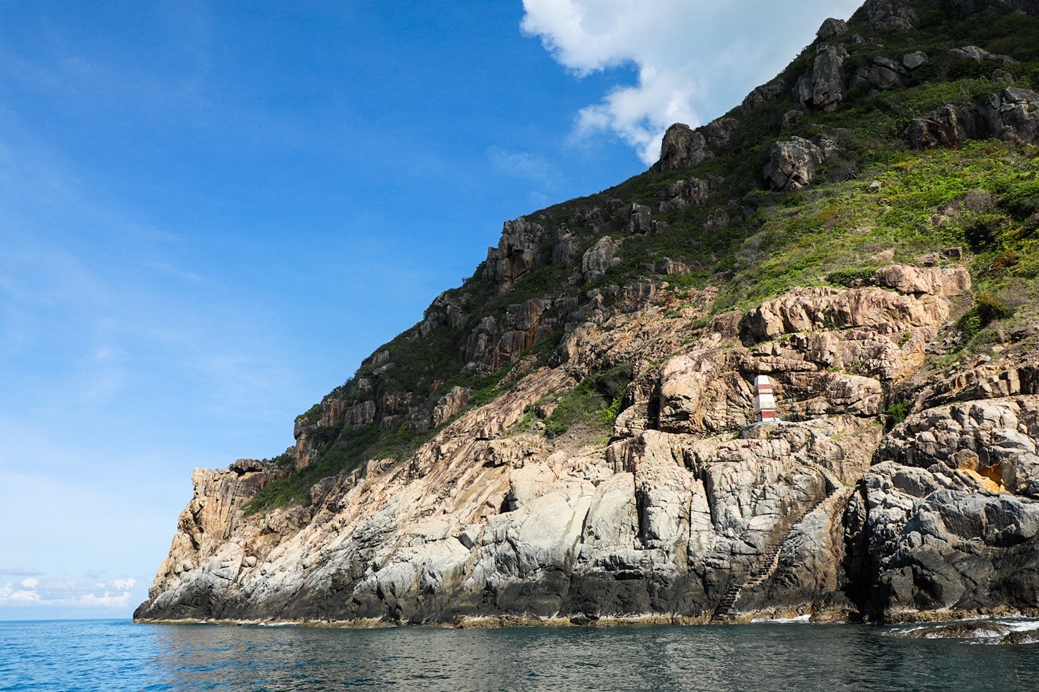 An was overwhelmed with the majestic beauty surrounding the landmark. Behind the landmark stands steep cliffs, and a lighthouse further up built in the French colonial era.