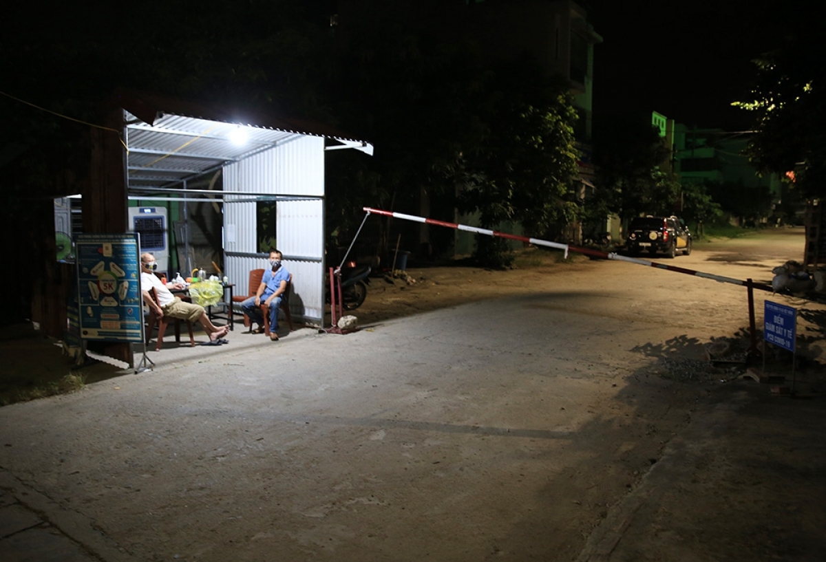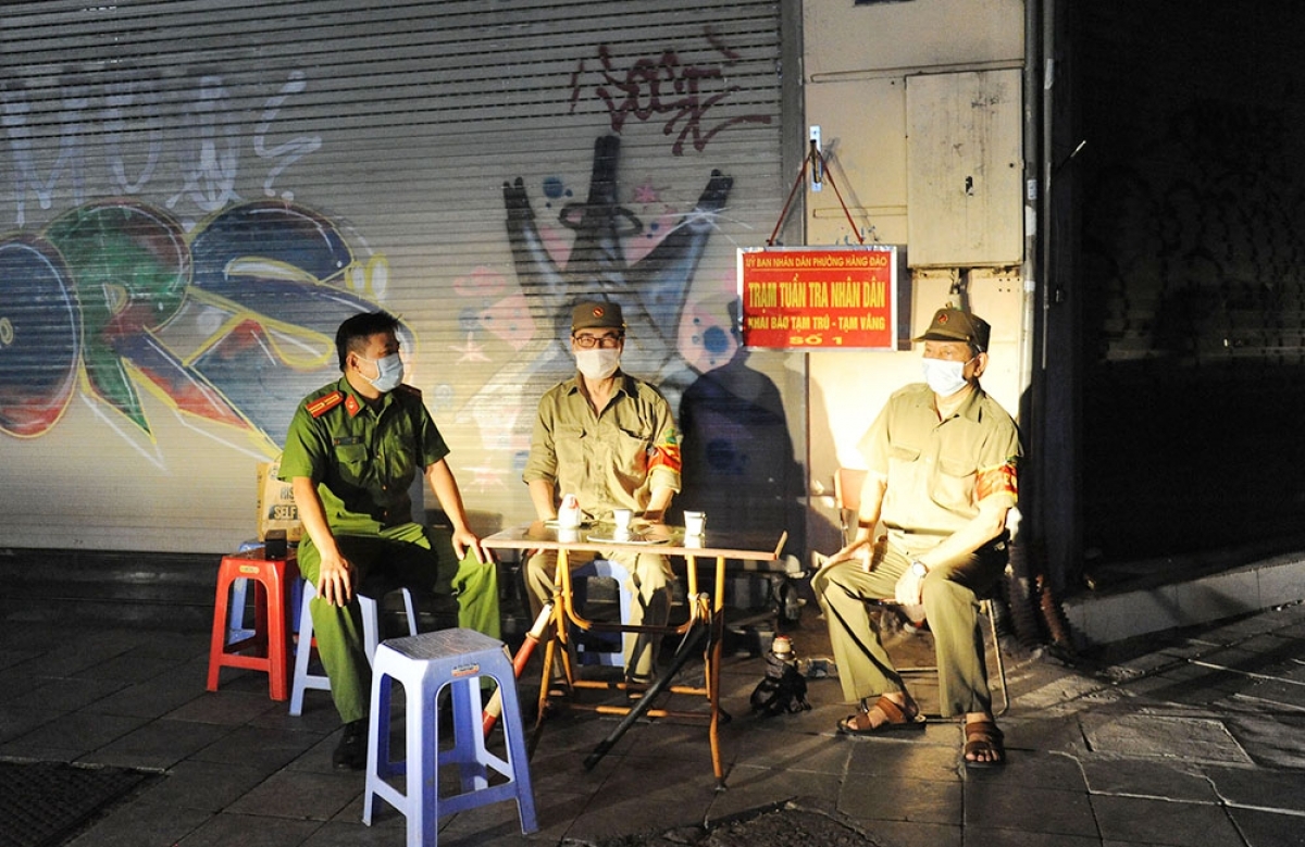 A checkpoint is set up in Hoan Kiem to ensure the restrictive measures are in place in the locality. |