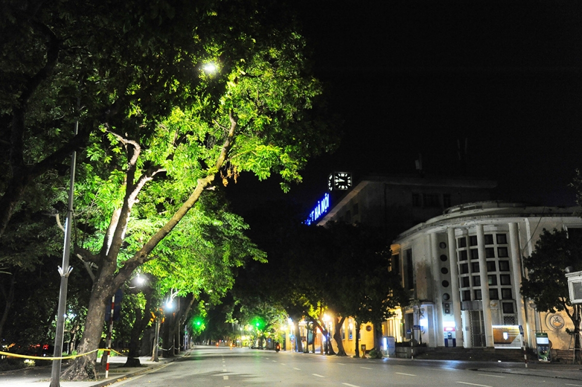 Hoan Kiem lake, one of the most densely crowded places in the capital every night, is left deserted due to the implementation of social distancing measures. |