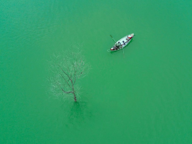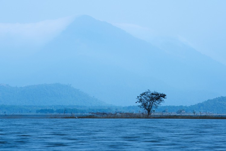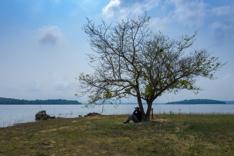 A man sits under a lonely tree at the edge of a lake in Song Hinh district, Phu Yen province. |