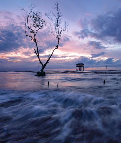 A shot of a lonely tree as it stands tall in the wind on Tan Thanh beach, Go Cong Dong district, Tien Giang province. |
