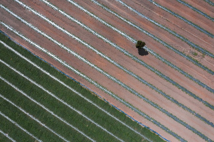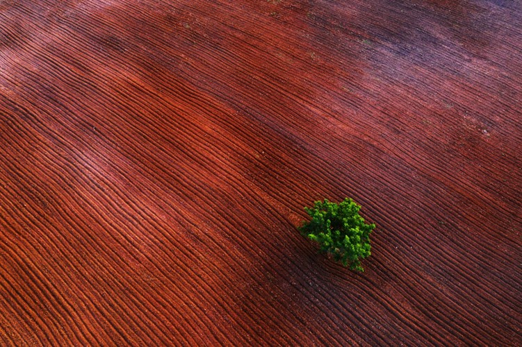 A tree stands alone in a field in Bac Ai district, Ninh Thuan. The tree’s colour stands in direct contract to the shade of the field. |