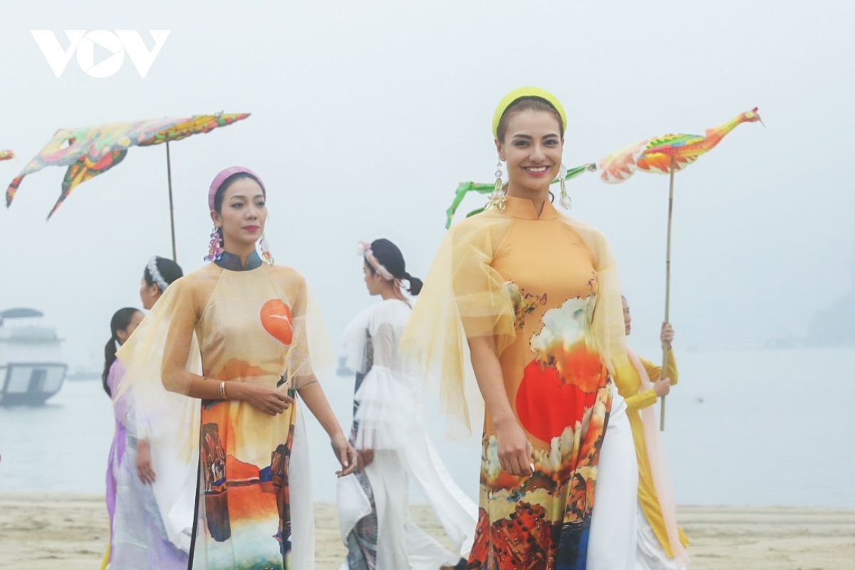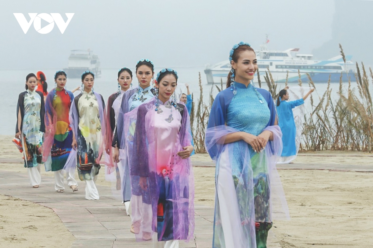 Ao Dai on show feature UNESCO-recognized World Natural Heritage Sites in Quang Ninh province. |