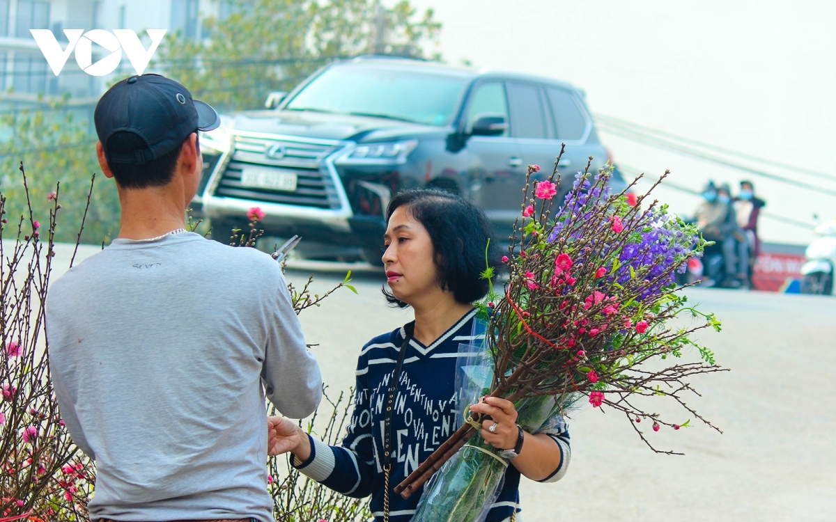 Hanoians prefer to buy a branch at the beginning of the peach flower season, and then buy to a tree during the Tet holiday. |