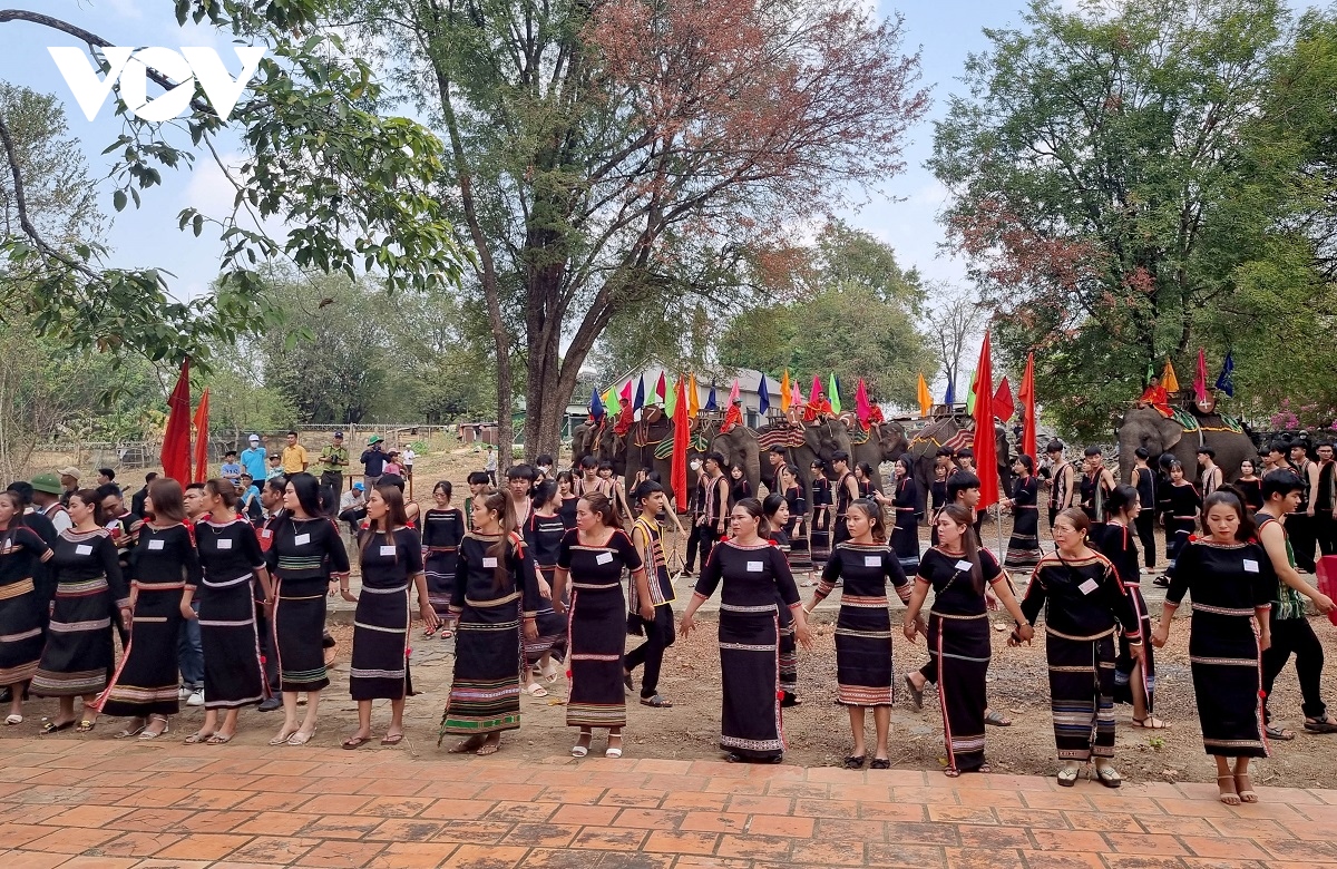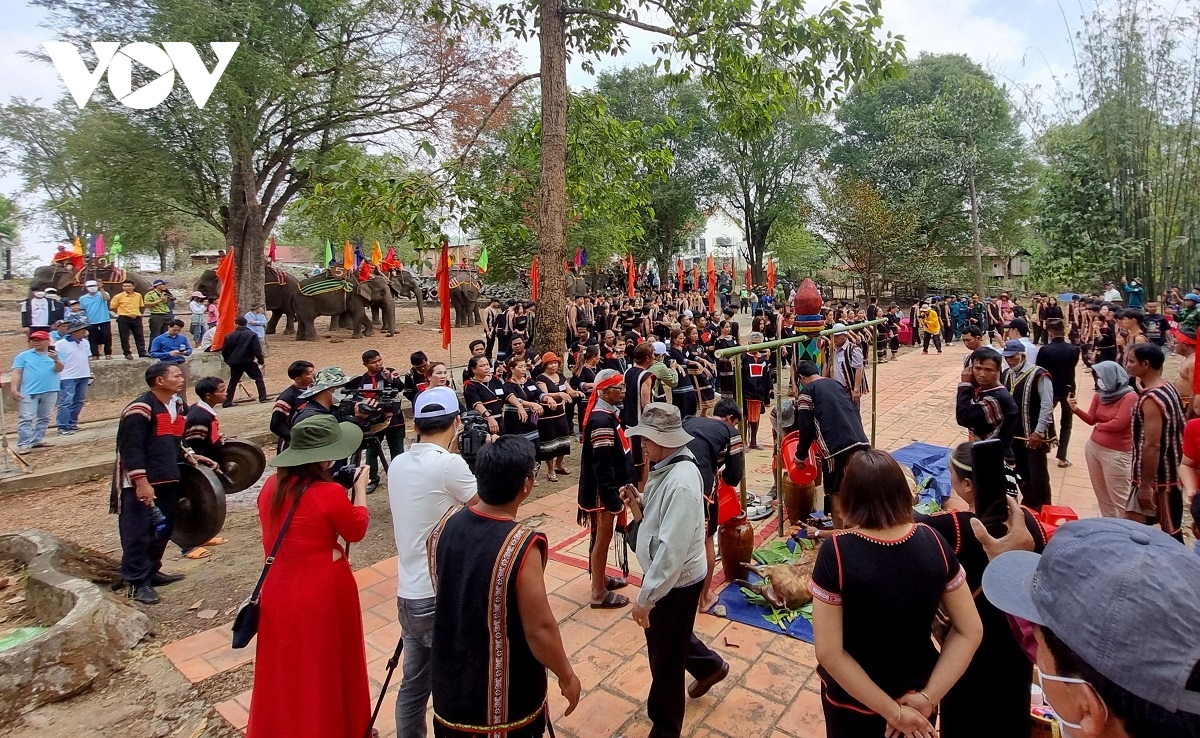The most anticipated part of the ceremony was praying for the elephants' health. The ceremony was held for 7 elephants in Krong Na commune, and signified the bond between human and animal to educate people to love and care for the elephants. (Photo: H Xiu/VOV) |