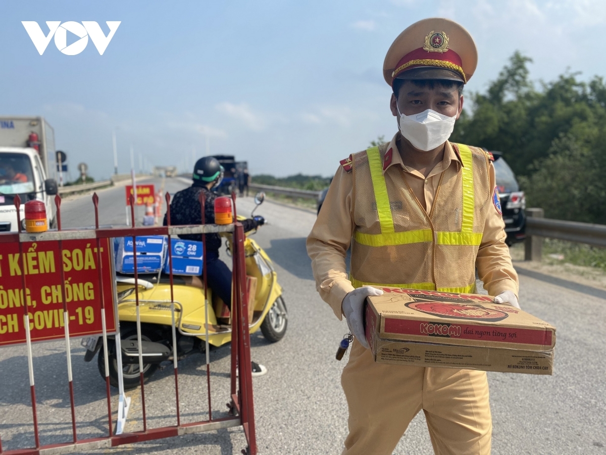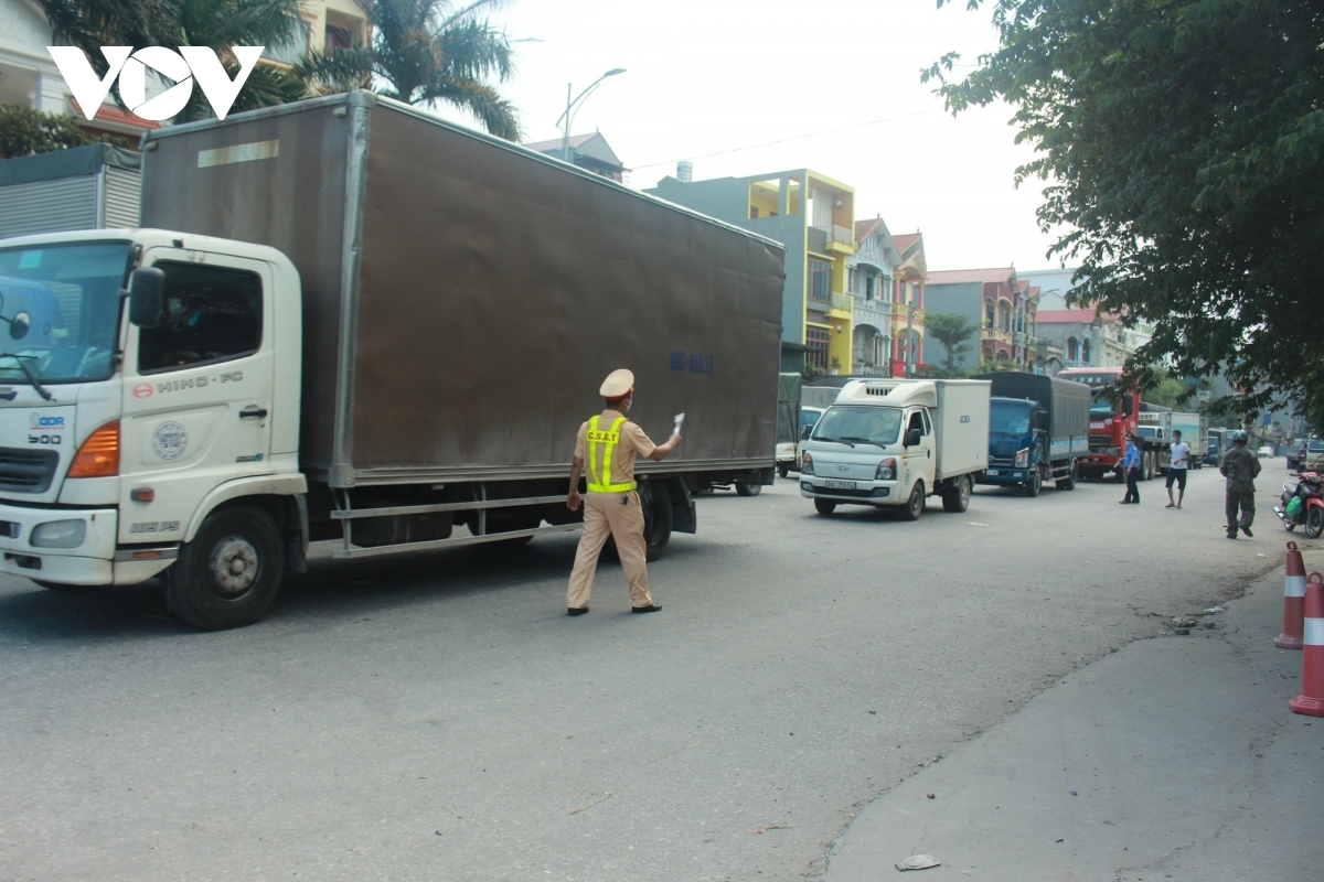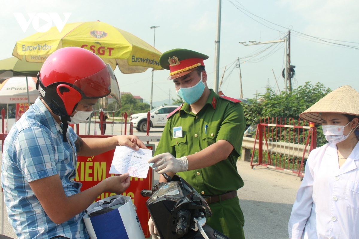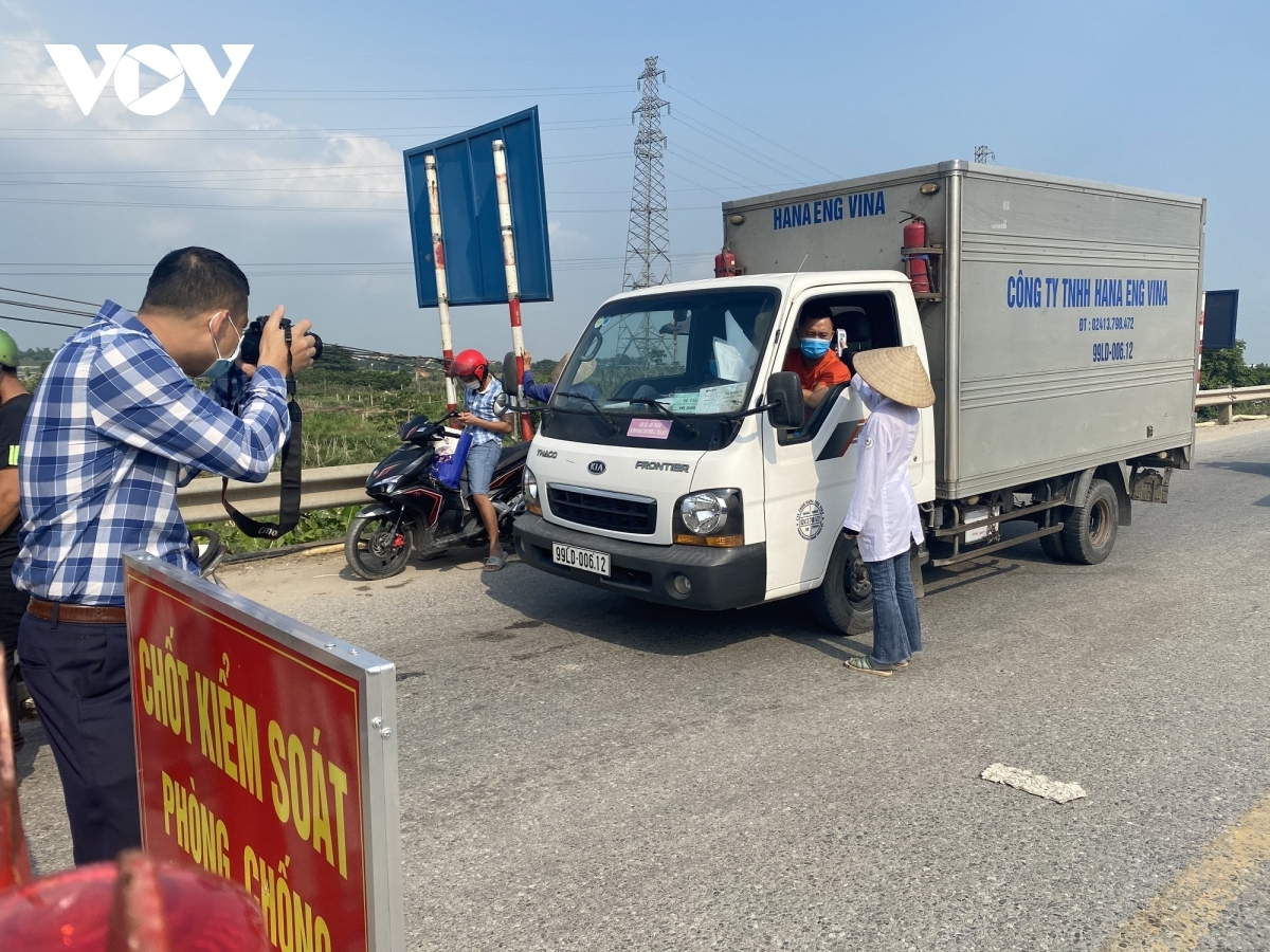 All movements passing through the checkpoint are put under strict scrutiny, as it is a crowded route linking Hanoi capital and neighboring Bac Ninh province. |