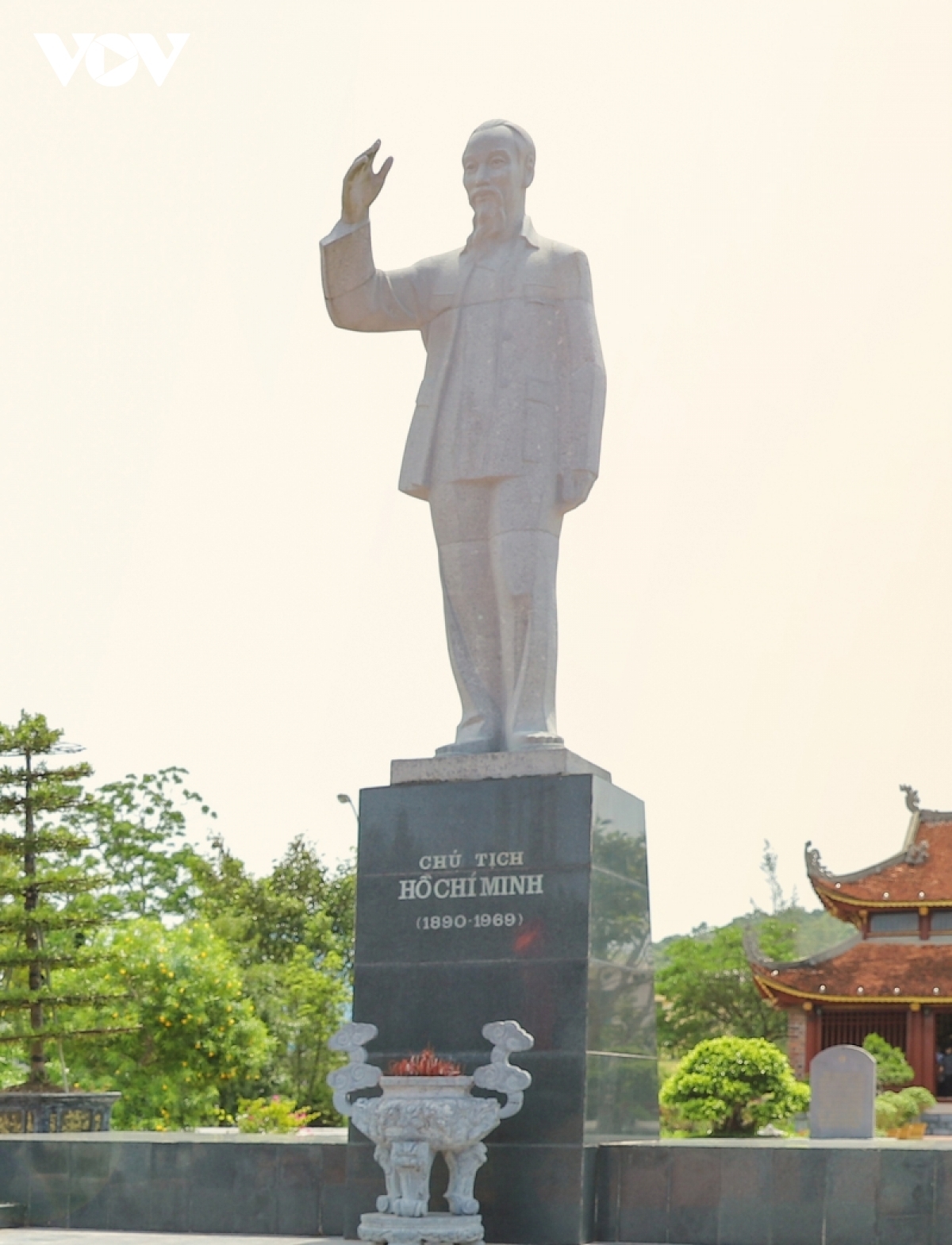 A statue of President Ho waving to people stands at the centre of the relic site. |