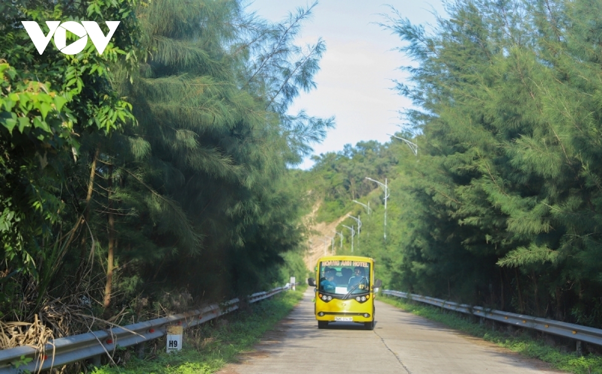 Discovering the island by tram, visitors can enjoy the poetic landscape of Tinh Yeu (Love) Road. |
