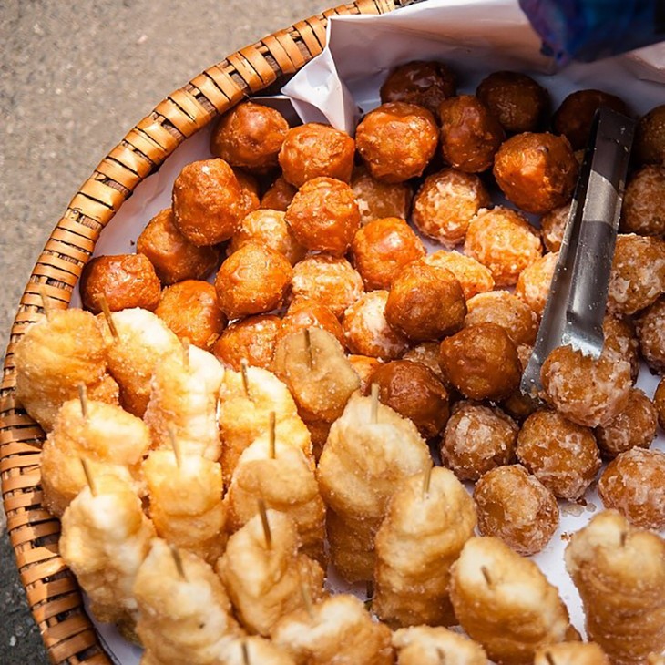 In Hanoi, doughnuts are street food, which are packed in a basket and carried around the street by sellers. Photo: An Nguyen/ pinterest.com