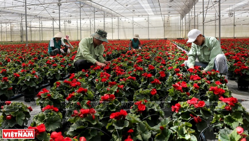 Flower workers at Dalat Hasfarm’s garden. (Photo: VNP/VNA) |