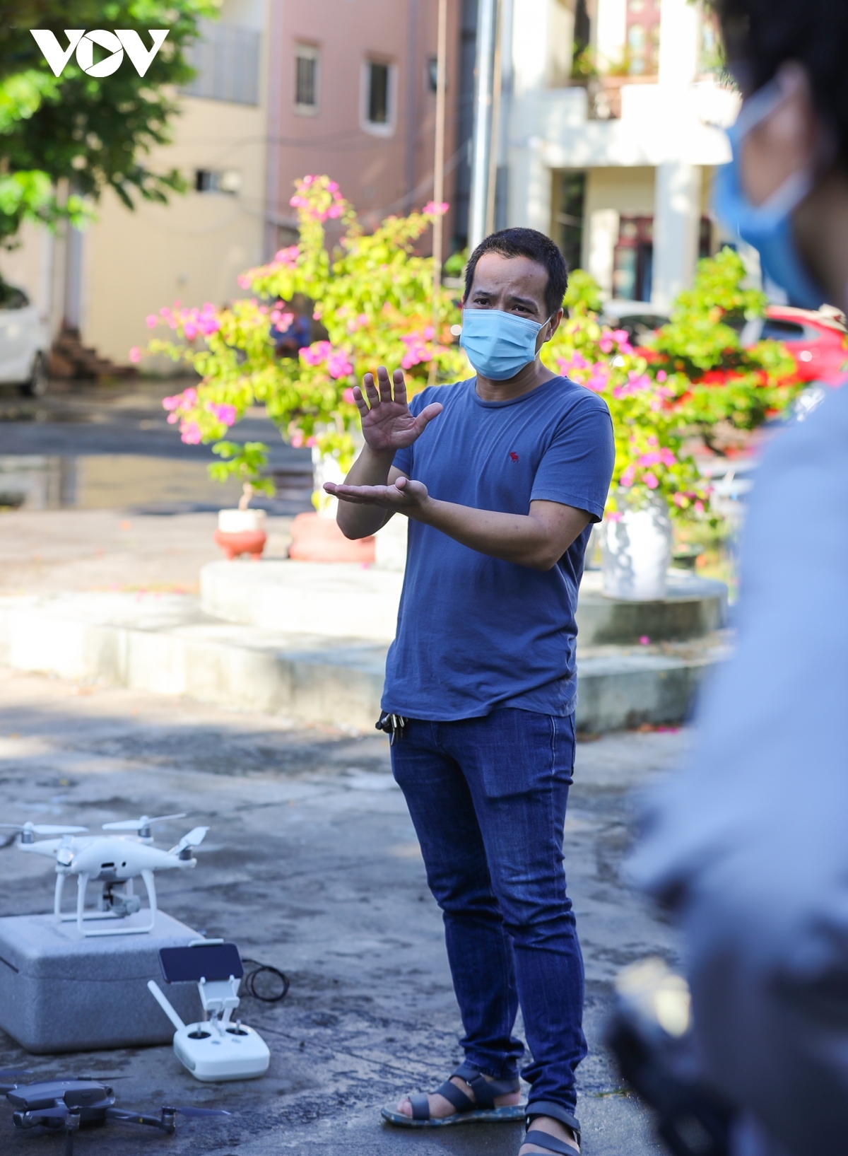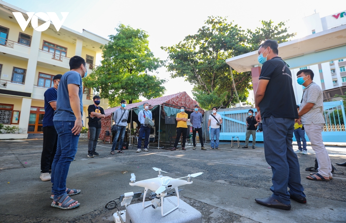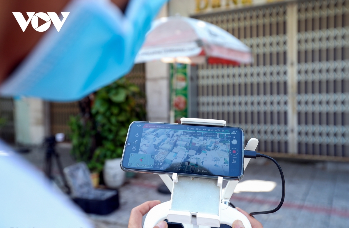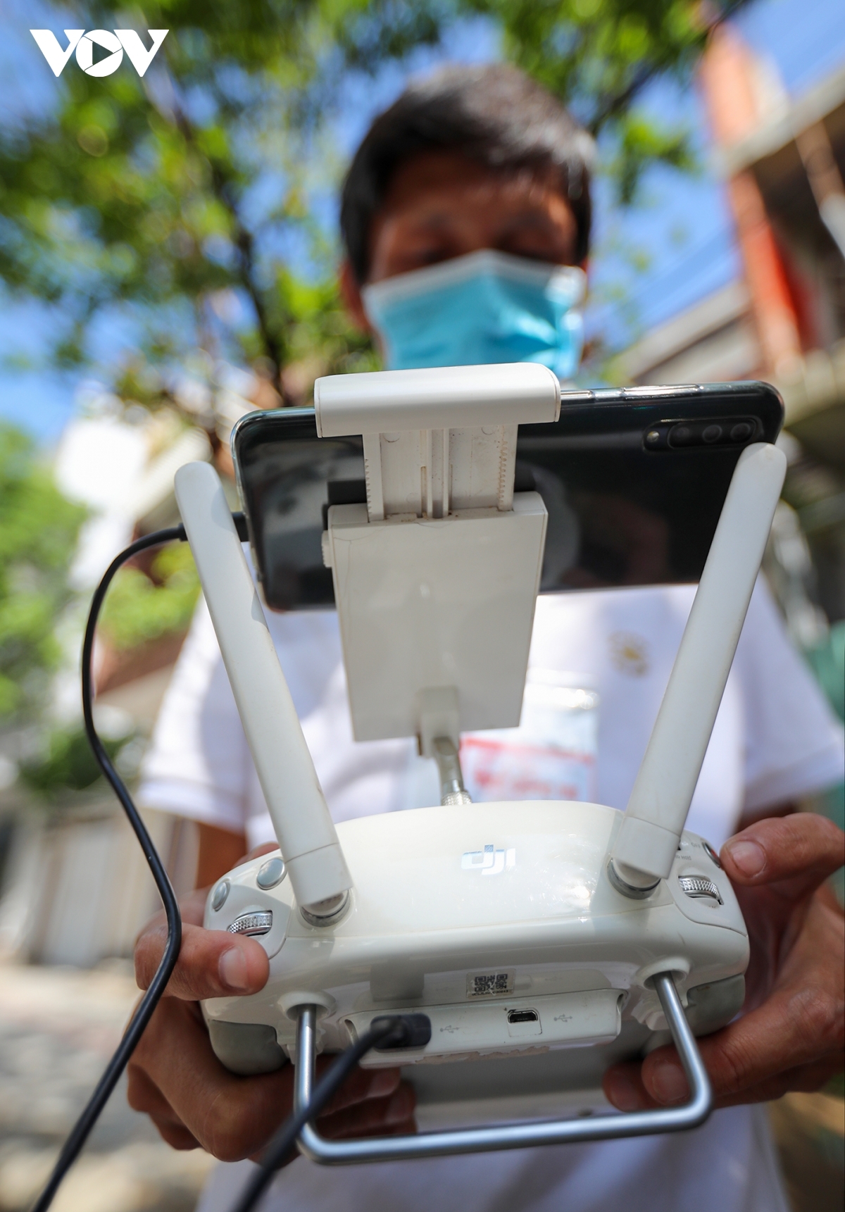 The administration of Hai Chau district mobilises 14 drones aimed at monitoring residents in high-risk areas, including Hoa Thuan Dong, Binh Hien, and Thach Thang wards. |